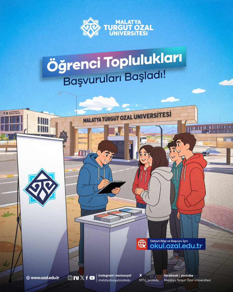 Özal Üniversitesi’nde öğrenci toplulukları için başvuru süreci açıldı. Yeni bir topluluk kurmak isteyen öğrenciler, 19 Mart 2026 mesai bitimine kadar başvurularını gerçekleştirebilecek.
